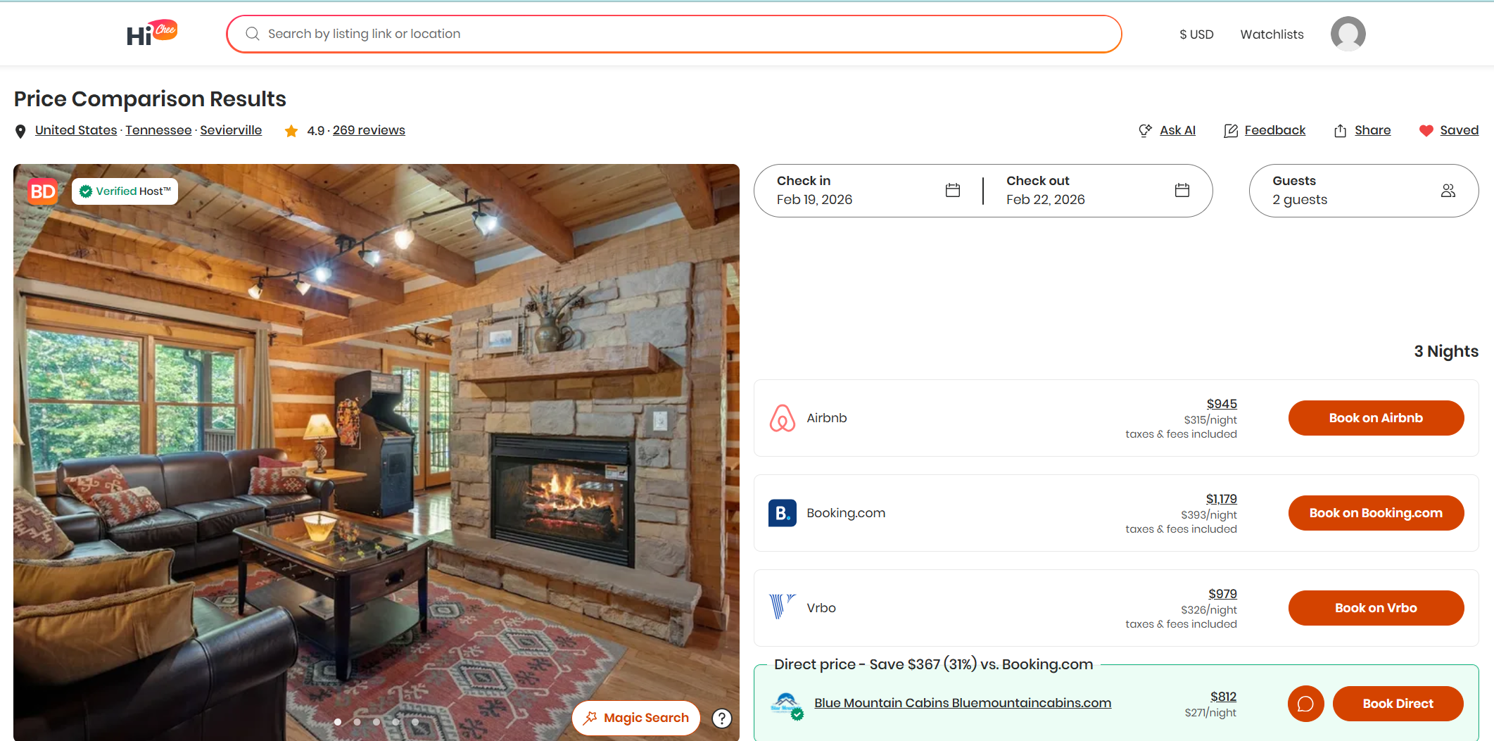 When planning a Smoky Mountains getaway, most travelers do the same thing: They start on Airbnb, Vrbo, or Booking.com. That’s completely understandable - those sites are great search tools. But what many guests don’t realize is that the price you see there is often not the best price available.That’s where price comparison tools like HiChee come in.