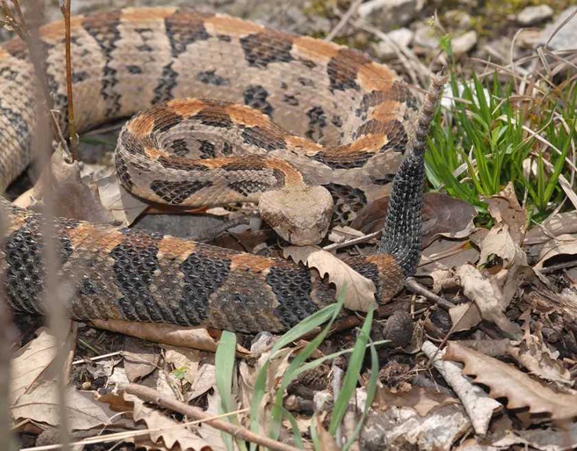 - Venomous (rare): copperheads, timber rattlesnakes